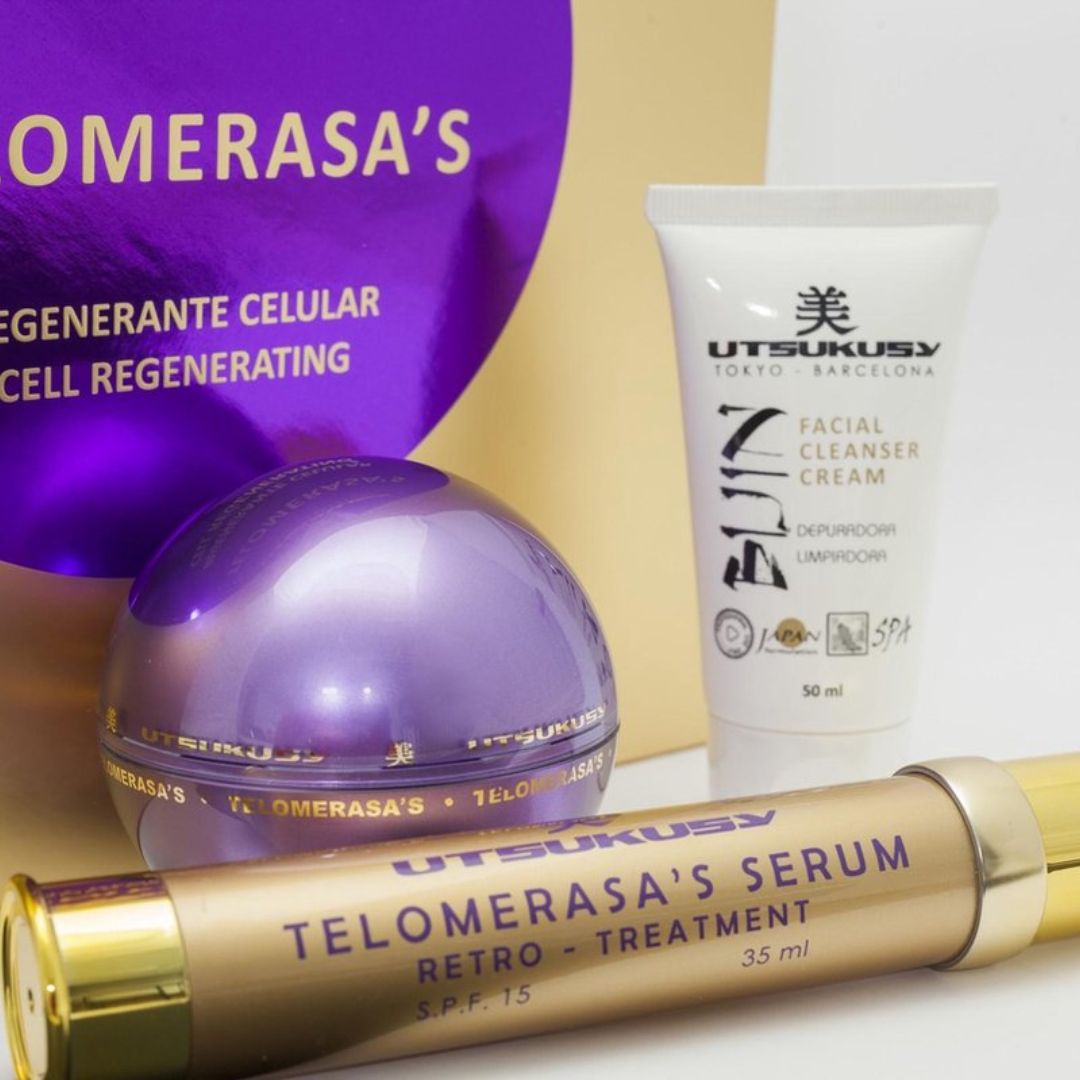 De werking van de Telomerasa’s lijn is gebaseerd op wetenschappelijk onderzoek (waarvoor in 2009 de Nobelprijs voor Fysiologie is uitgereikt) waarbij ontdekt werd hoe telomeren het DNA van cellen beschermen tegen veroudering en afbraak. De heerlijke producten van Utsukusy-Telomerasa’s beschermen je huid. Je ziet er weer een stuk jonger uit!